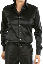 A 100% Mulberry silk men’s shirt is a luxury button-down option. Known for its smooth texture and premium quality, it offers comfort and elegance. Perfect for formal or smart-casual occasions, it provides a sophisticated look.