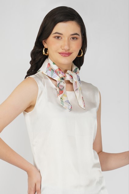 Home Accessories mulberry silk scarf in India 100% Mulberry Silk Scarf for women – Premium quality Square Neckerchief – White Digital Printed Scarves with Gift Packed 22″ x 22″ (Copy)