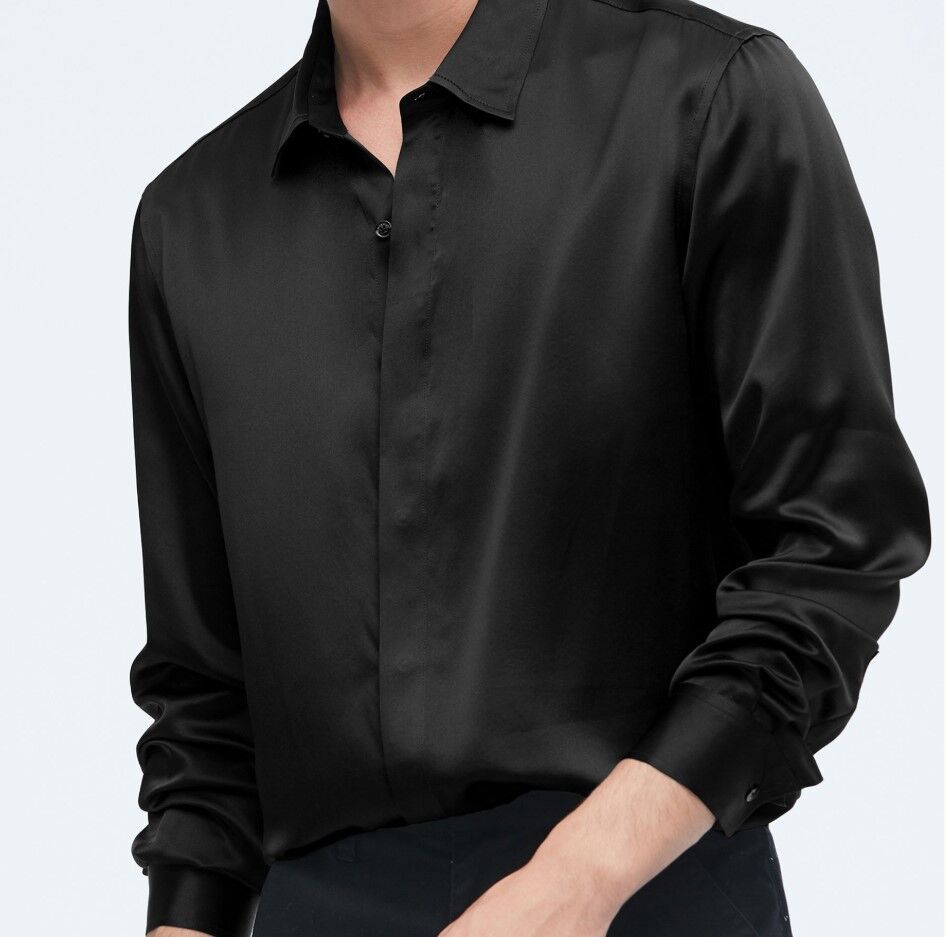A 100% Mulberry silk men’s shirt is a luxury button-down option. Known for its smooth texture and premium quality, it offers comfort and elegance. Perfect for formal or smart-casual occasions, it provides a sophisticated look.