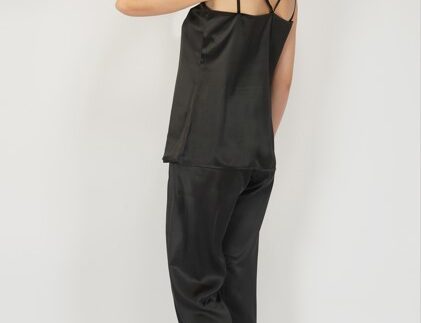 Mulberry Silk Cami Boxer Pajama Set for Women (Black)